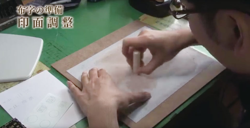 •point:十分な納期(一か月以上)がある場合は、数日たってから、改めてチェックします。この確認作業により、別の視点から見ることで、新たな発見があります。字入れ作業は、良い印影を作るために特にゆっくり丁寧に行います。