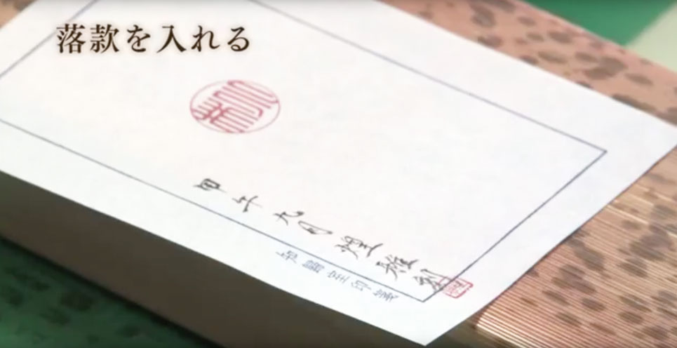 仕上げ刀を使い、枠を均一の太さに揃え、文字の曲りを直し、文字に筆意等の流れをより精密に出す(一点一画まで気を配り、文字の流れ筆意を生かして仕上げます。)